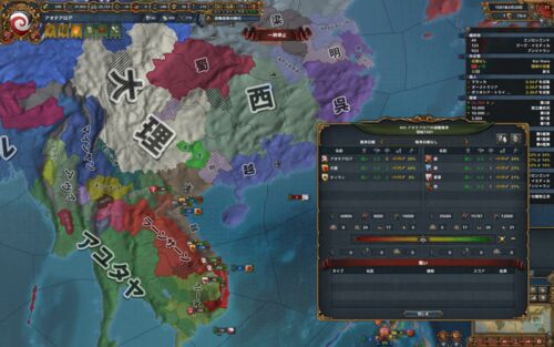 前回→ tsuki-mecha.hatenablog.com 時は経ち1581年。内政に費やした50年分の国力を用い大国越に宣戦布告。数年前まで中華に君臨した大帝国明は諸侯の分裂によって崩壊。越、楚、西、蜀、梁、順、呉などの国が興った。このおかげでアオテアロアは中華進出の…